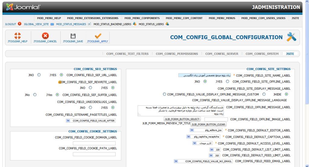 مشکل با ترجمه منوها و ماژولها در جوملا (لطفا کمک کنید)